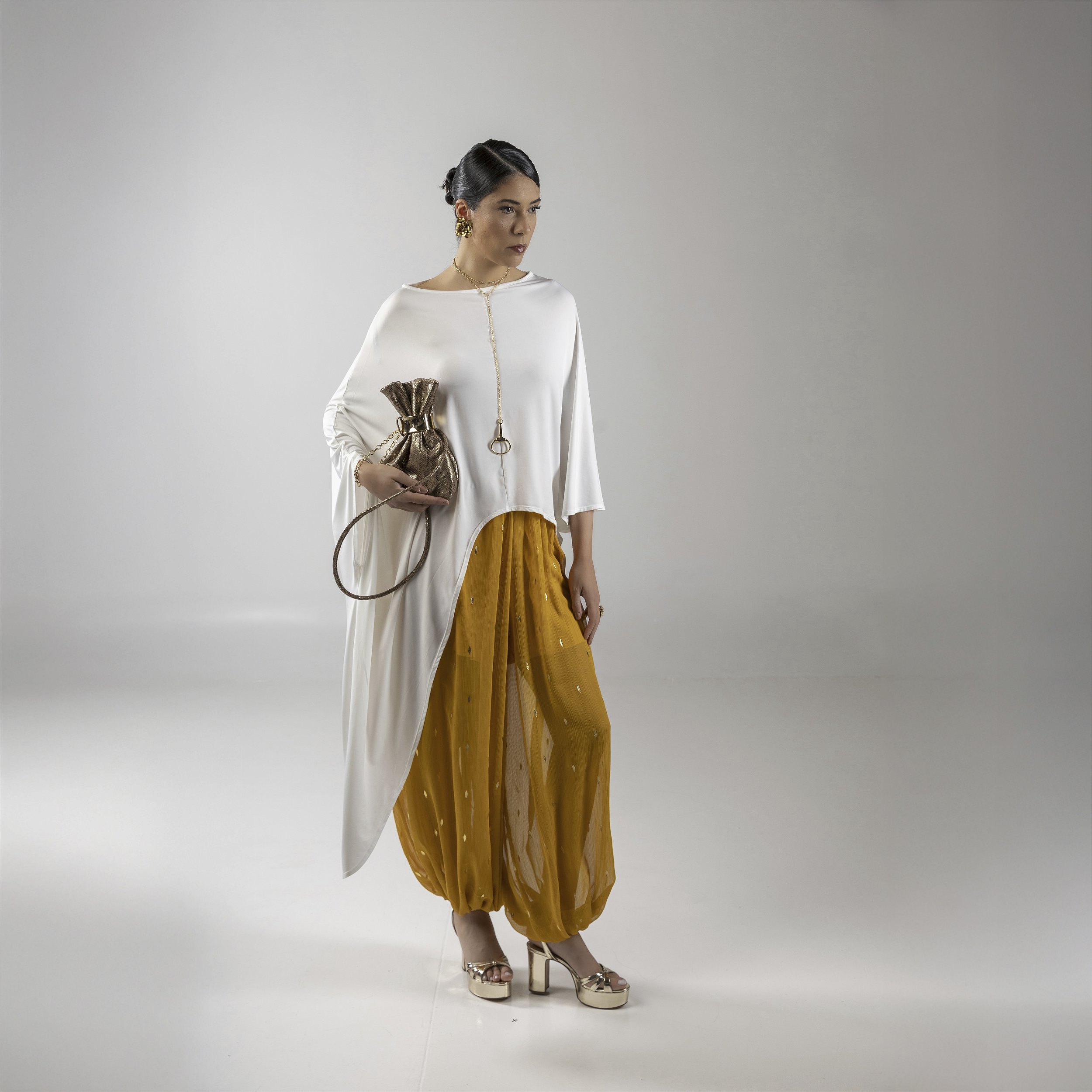 Calça aladim de crepe transparente