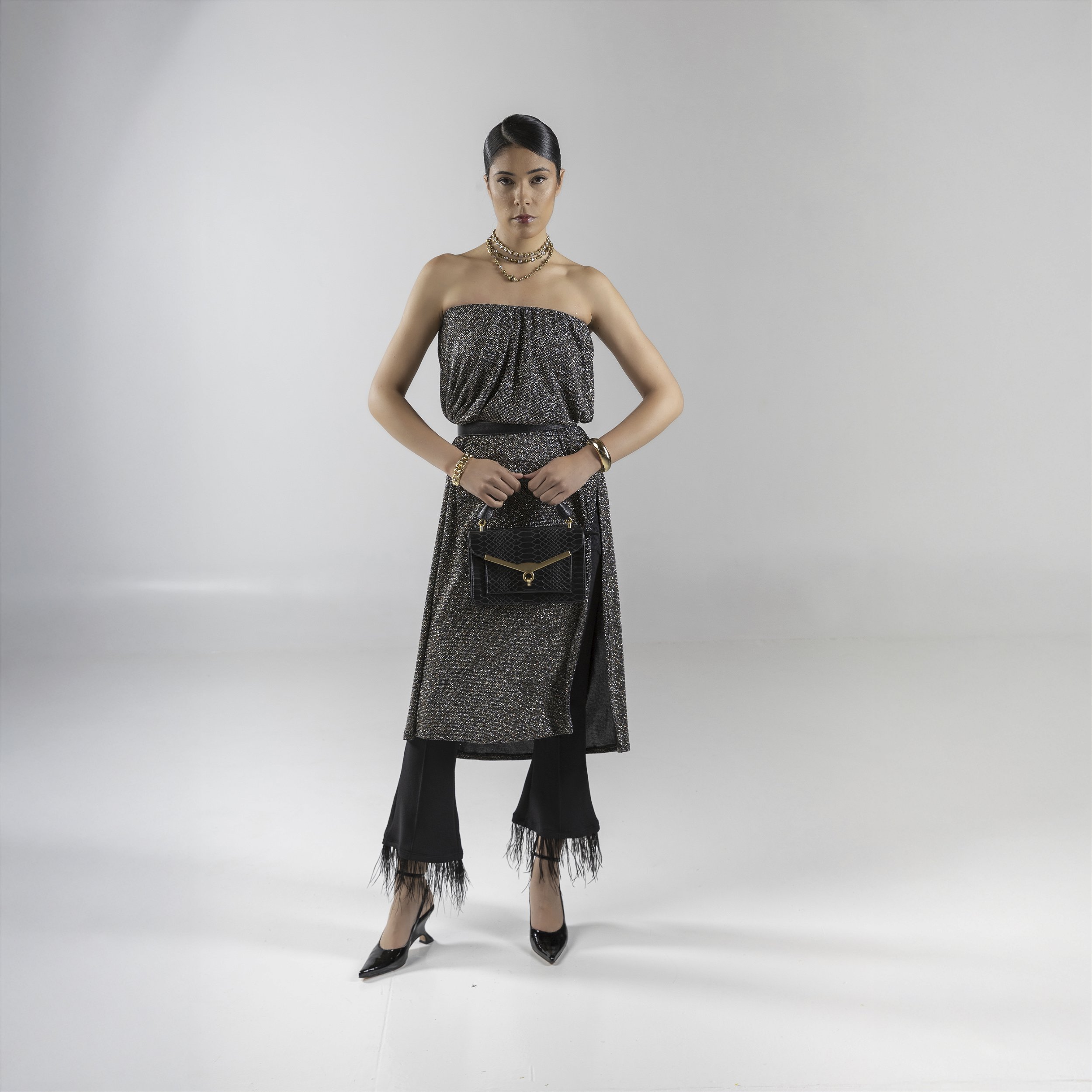 Calça curta com plumas